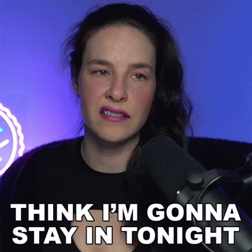 Cristine Raquel Rotenberg says "Think I'm gonna stay in tonight" while holding a drink.