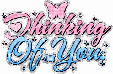 A pink and blue sign featuring the text 'Thinking Of You' adorned with a delicate butterfly.