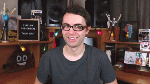 Steve Terreberry (Stevie T) gives an awkward smile in front of a '2 Million Subscribers' sign.