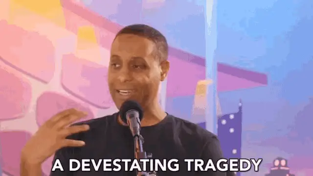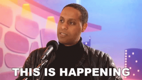 Korey Coleman speaks into a microphone with 'THIS IS HAPPENING' displayed.