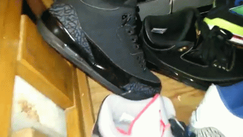 A diverse collection of Air Jordan and Nike sneakers, showcasing various models and colors on display.