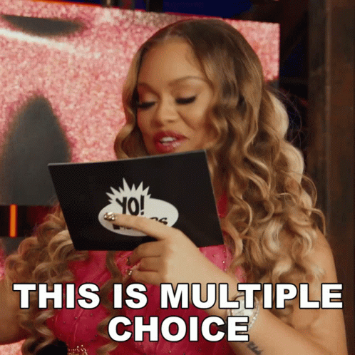 Latto smiles and speaks while holding a 'YO!' card during the 'This Is Multiple Choice' segment.
