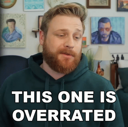 Grady Smith, wearing a green hoodie, shares his opinion with the on-screen text 'THIS ONE IS OVERRATED'.