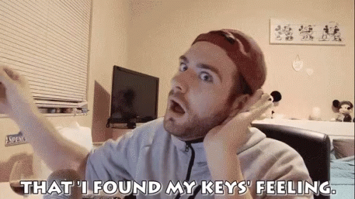 Thisorlandolife expresses extreme relief and joy after finding his keys, making a funny, exaggerated face.