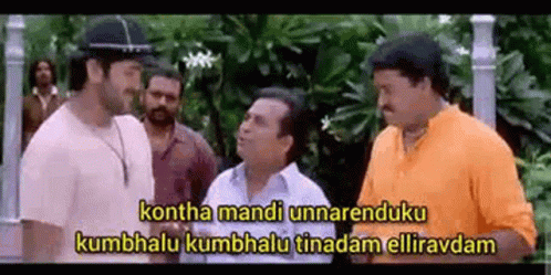 Brahmanandam delivers a funny line in a park scene from Thokkathotakura Ttk, with other actors listening.