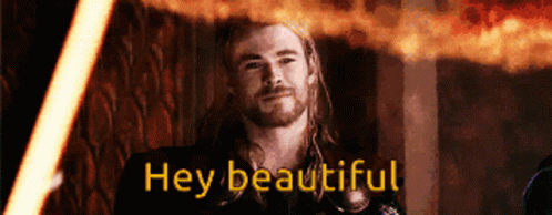 Thor, played by Chris Hemsworth, smiles and says 'Hey beautiful' in this charming clip.