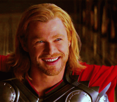Chris Hemsworth as Thor Odinson, the Marvel Avenger, smiles warmly at the camera.