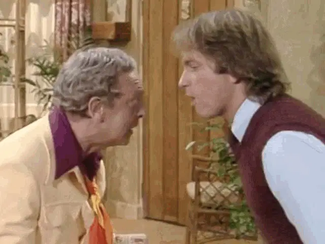 Don Knotts as Ralph Furley from Three's Company laughing and making funny faces.