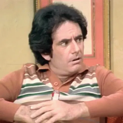 Suzanne Somers as Chrissy Snow from Three's Company reacts with a surprised expression, hand on her chest.