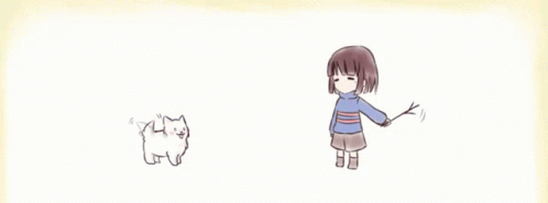 Frisk from Undertale playing fetch with the Annoying Dog, leading to an encounter with many other dogs.