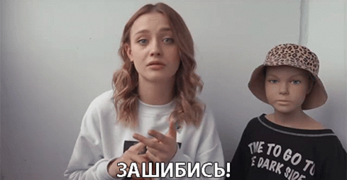 Lera Yaskevich gives a double thumbs up next to a mannequin, exclaiming 'Awesome!' in Russian.