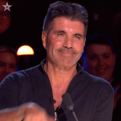Simon Cowell gives an enthusiastic thumbs up, likely during a talent show like Britain's Got Talent.
