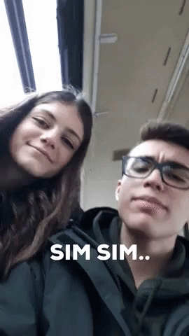 Tiagorafa and a friend pose for a selfie video, with 'SIM SIM..' text overlay, sharing a moment.