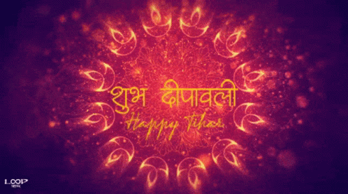 Vibrant animated greeting for Tihar and Deepawali, featuring 'Happy Tihar' and 'Shubh Deepawali' text.