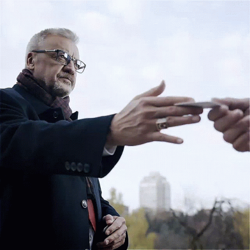 Çağrı Ertuğrul from the Turkish TV series Teşkilat, wearing glasses and a scarf, extending his hand.
