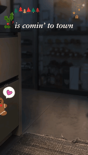 Animated dog Clyde tiptoes through the kitchen on Christmas Eve, looking for treats, with a gingerbread man sticker.
