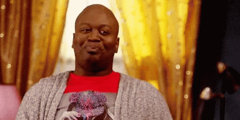 Titus Andromedon blows a kiss, then reacts with a dramatic hand gesture, showcasing his iconic personality.