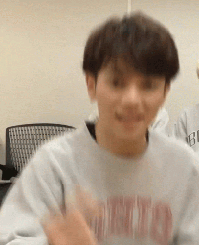 Tj Traja smiles and makes a finger heart gesture, wearing a light grey sweatshirt.