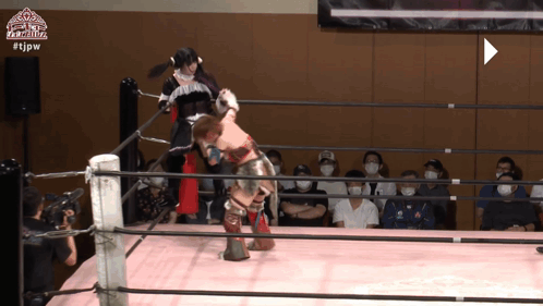 two women are wrestling in a ring with #tjpw on the bottom
