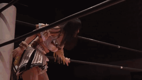 a woman is standing in a wrestling ring with her mouth open ..