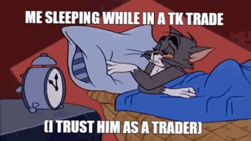 Tom the cat sleeping soundly, representing someone trusting their 'TK trade' while they rest.