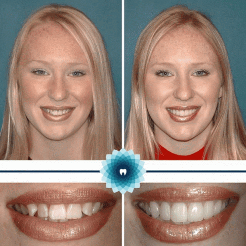 Before and after dental transformation, showcasing TMJ treatment, dentures, and clear aligner services in Tulsa.