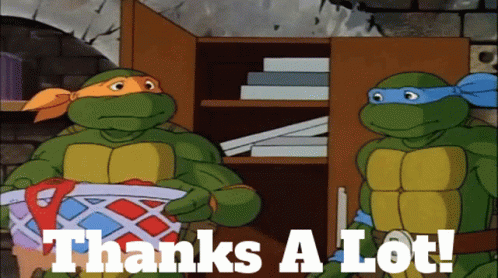 Leonardo and another Teenage Mutant Ninja Turtle with a sarcastic 'Thanks A Lot!' message.