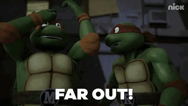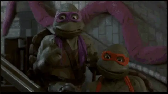 Raphael and Donatello from TMNT stand together, with Raphael asking 'What's up Doc?'