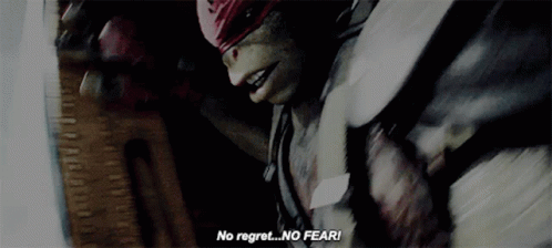 Raphael from Teenage Mutant Ninja Turtles declares "No regret...NO FEAR!" in an intense action sequence.