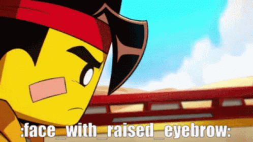Qi Xiaotian from Lego Monkie Kid makes a face with a raised eyebrow, conveying skepticism or surprise.