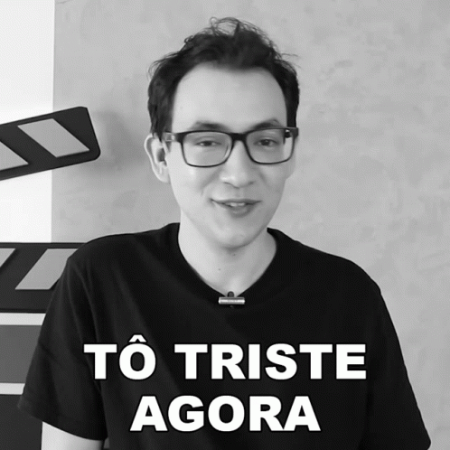 Gabriel Dearo looking sad with the text 'Tô Triste Agora' (I'm Sad Now) on screen.
