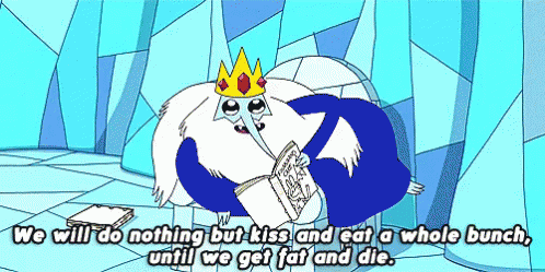 Ice King from Adventure Time proposes a life of kissing and eating until fat and death, expressing his unique view on love.