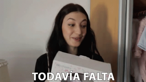 Amira Chediak holds a box with 'Todavia Falta' written on it, from the show 'En Un Rato'.