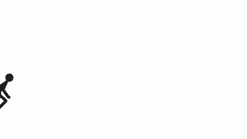 A stick figure runs, falls, and gets back up in a simple, dynamic animation.