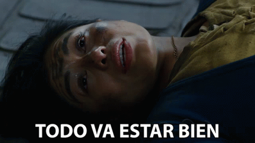 Antonella Valeriano as Iria, lying on the floor with the text 'Everything will be alright' displayed.