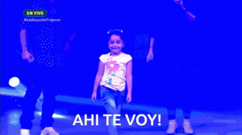 A little girl on the stage of Todos Quieren Fama, hosted by Roger Gonzalez, excitedly declares 'Ahi Te Voy!' (Here I Come!).