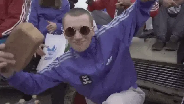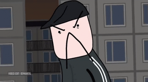 Tolik Alkogolik, the Uamee character, in an animated clip, standing in front of a building.