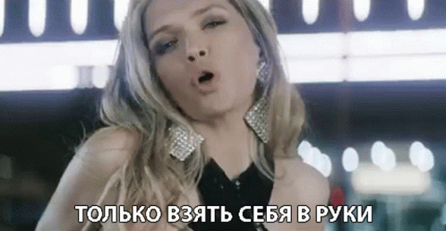 Vera Brezhneva sings 'Just Pull Yourself Together' in a music video, wearing a black top and sparkling earrings.