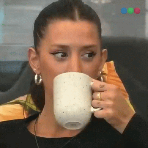 Juliana from Gran Hermano sips her drink, looking intently at something off-camera.