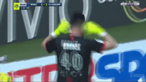Goalkeeper Tomas Koubek reacts during the Rennes vs Guingamp football match, jersey number 40.
