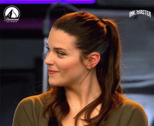 Dani Ryan playfully sticks her tongue out during Ink Master on Paramount Network.