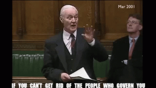 Tony Benn delivers a powerful speech in March 2001, stating, 'If you can't get rid of the people who govern you, you don't live in a democratic system.'