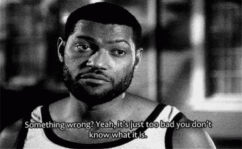 A man from Boyz N The Hood says 'Something wrong? Yeah, it's just too bad you don't know what it is.'