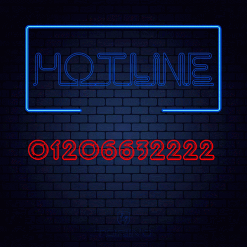 A vibrant blue neon sign displaying 'HOTLINE' and a red neon phone number '01206632222' with the Torino logo.