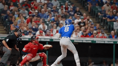 Toronto Blue Jays' Cavan Biggio swings and connects for a powerful hit during an MLB game.