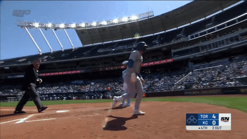 Cavan Biggio runs the bases during a Toronto Blue Jays baseball game against the Kansas City Royals.