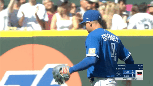 George Springer, a Toronto Blue Jays player, on the baseball field during a game.