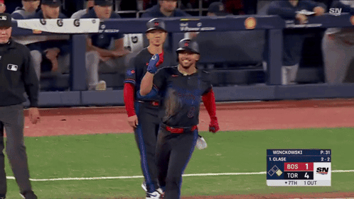 a baseball game is being played with a scoreboard showing the score of 1 to 4