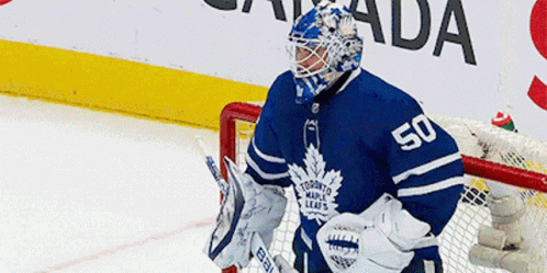 Toronto Maple Leafs goalie Erik Kallgren stands in front of the net during a hockey game.