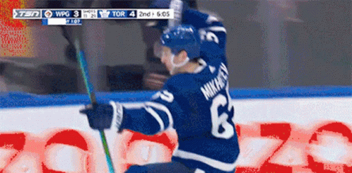 Ilya Mikheyev celebrates a goal for the Toronto Maple Leafs, extending their lead in an NHL game.